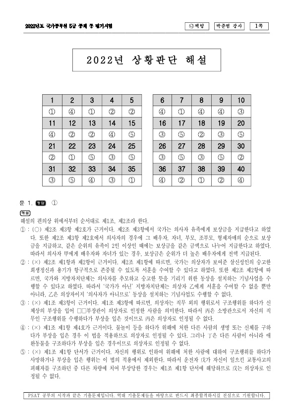 ¹ÚÁعü 2022³â 5±Þ PSAT»óȲÆÇ´Ü ±âÃâÇØ¼³(+¹®Ç׺°Á¤´ä·ü)
