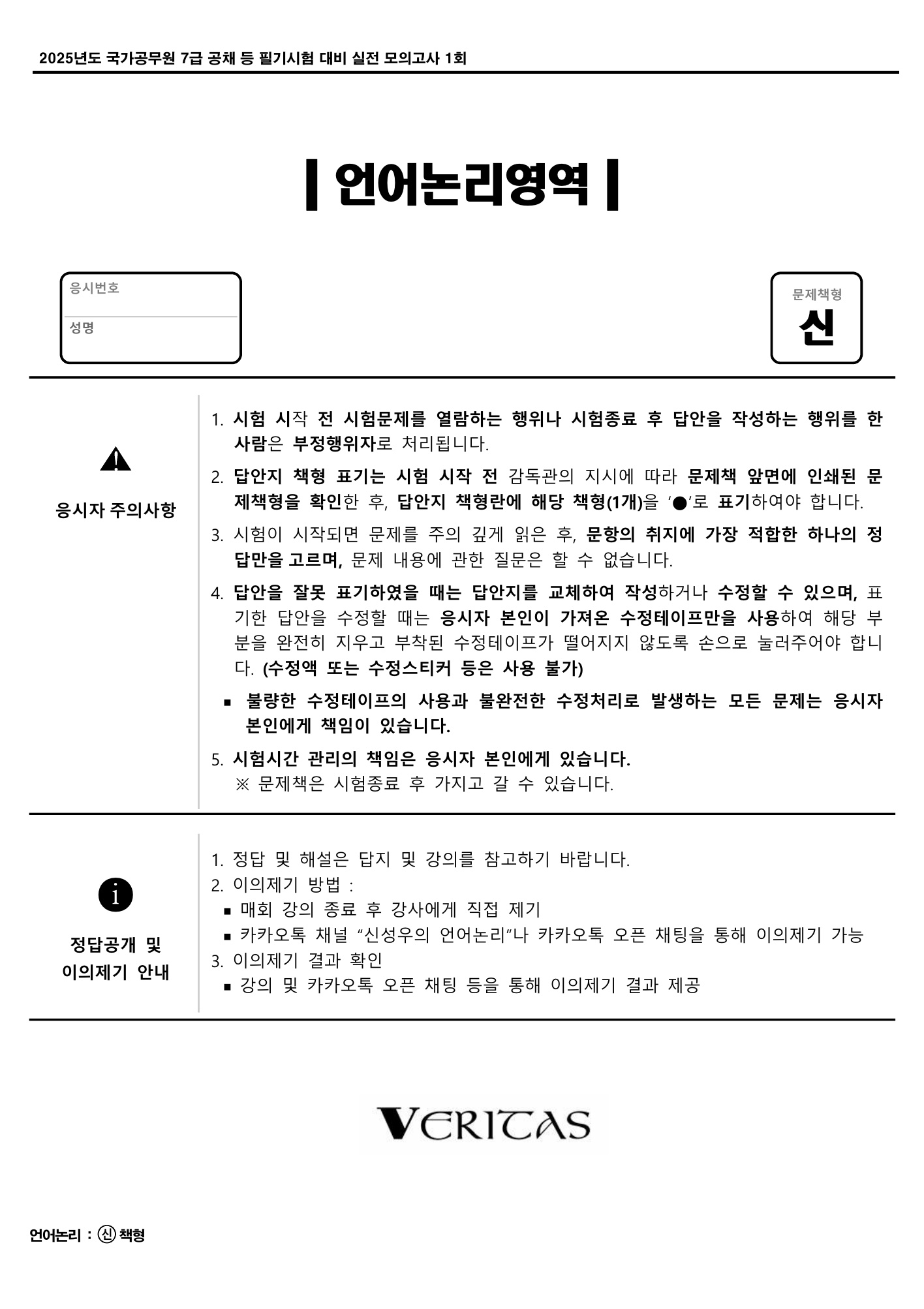 - home > [7±Þ PSAT] > 7±Þ ½ÇÀü¸ðÀǰí»ç(¸ð°) > 2025´ëºñ > 7±Þ ½Å¼º¿ì [2025´ëºñ] 7±Þ ¾ð¾î³í¸® ½ÇÀü¸ðÀǰí»ç(ÃÑ4ȸ)