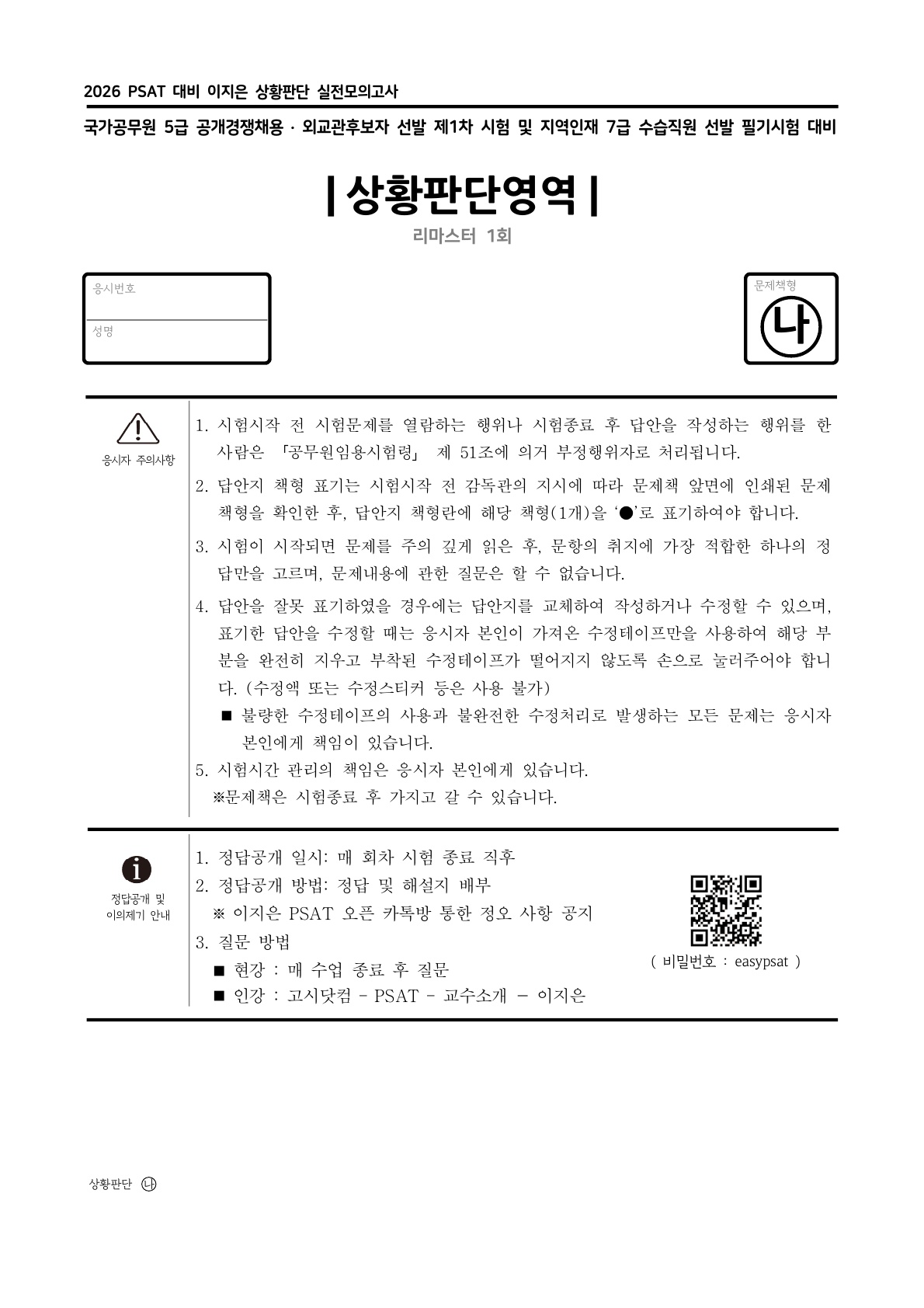- home > [5±Þ PSAT] > ½ÇÀü¸ðÀǰí»ç(¸ð°) > 2026´ëºñ > ÀÌÁöÀº (2026´ëºñ) PSAT»óȲÆÇ´Ü ½ÇÀü¸ðÀǰí»ç[¸®¸¶½ºÅÍ](ÃÑ8ȸ)